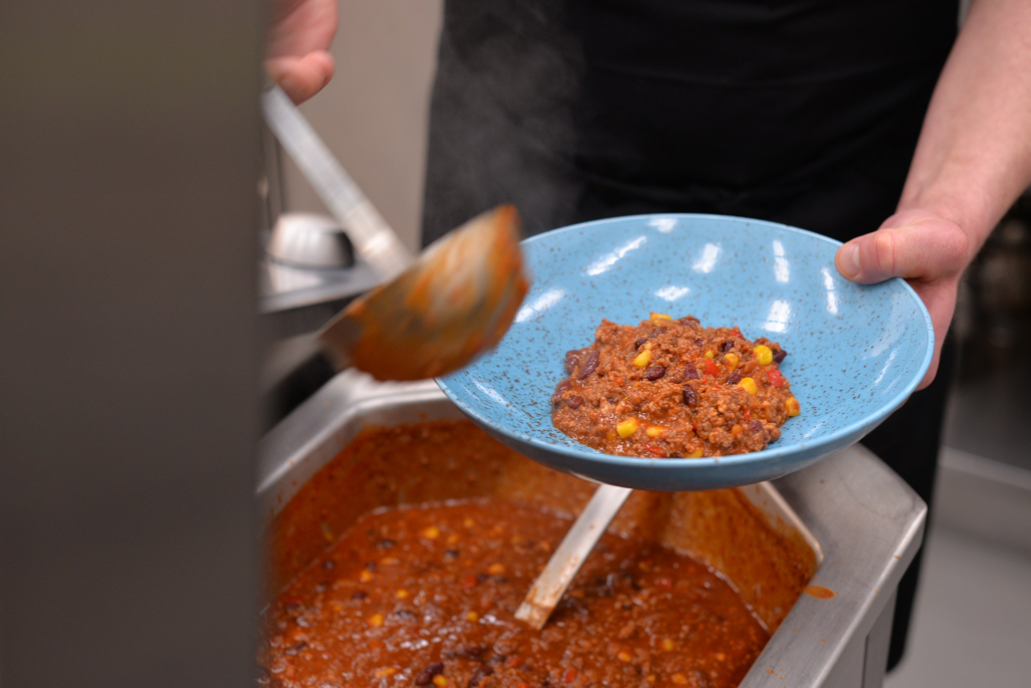 K čaji si tady v bývalém areálu starého Havlíčkova mlýna můžete dát i následující jídlo. Jedná se o pikantní dobrotu s exotickým názvem: Chilli con carne.