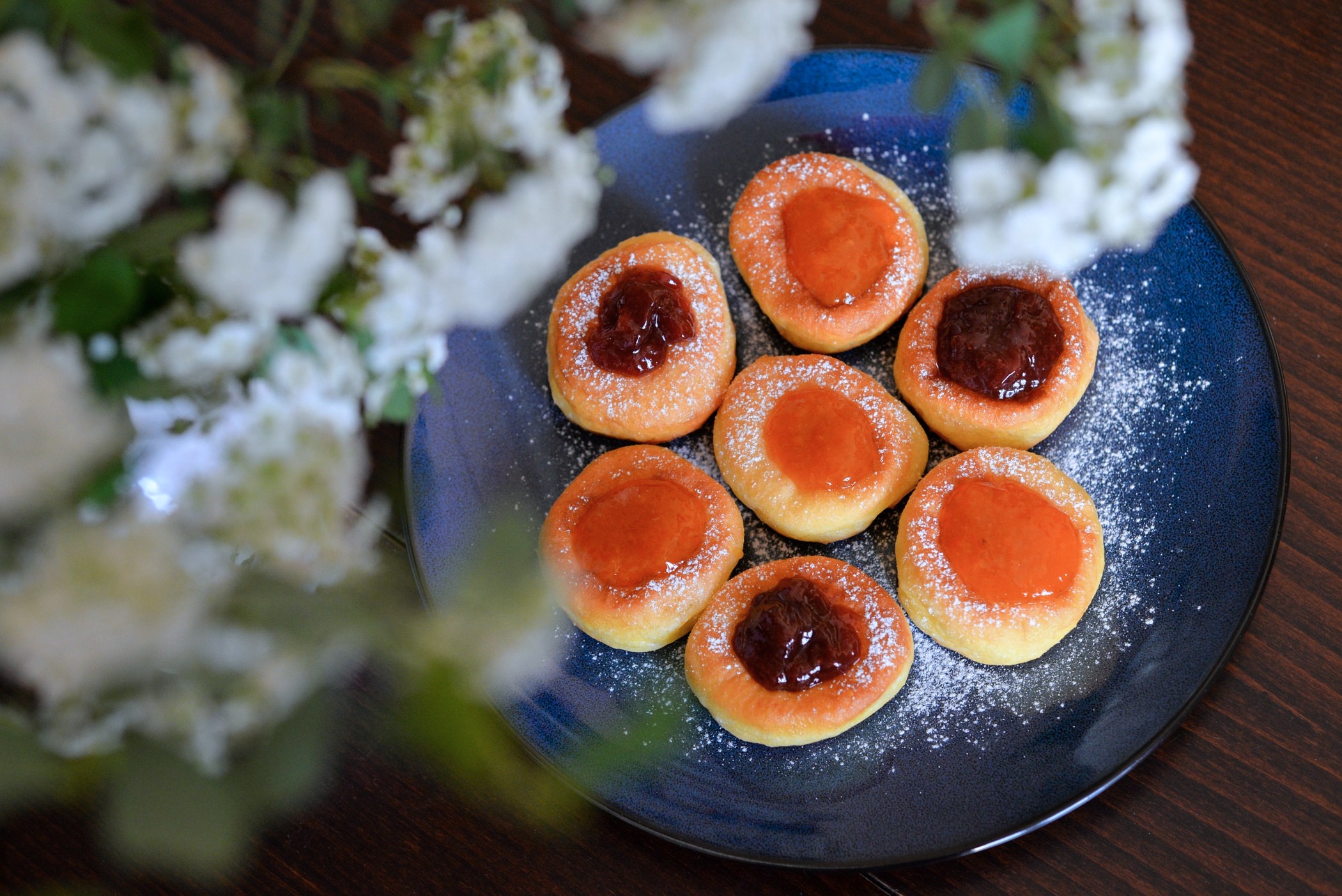 - Hotové pocukrujeme a do důlku dáme marmeládu nebo šlehané bílky s cukrem.