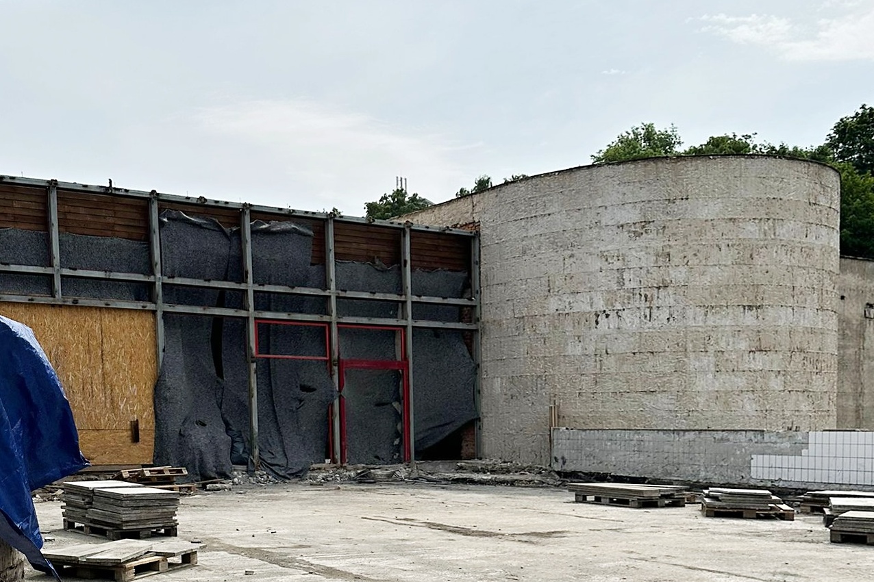 Za zpoždění může hlavně nepříznivé počasí. V bazénu už skončily bourací práce a pryč už je taky kompletně celý plášť budovy. Zbyla tak konstrukce, kterou dělníci sanují, a kterou je potřeba také opískovat.