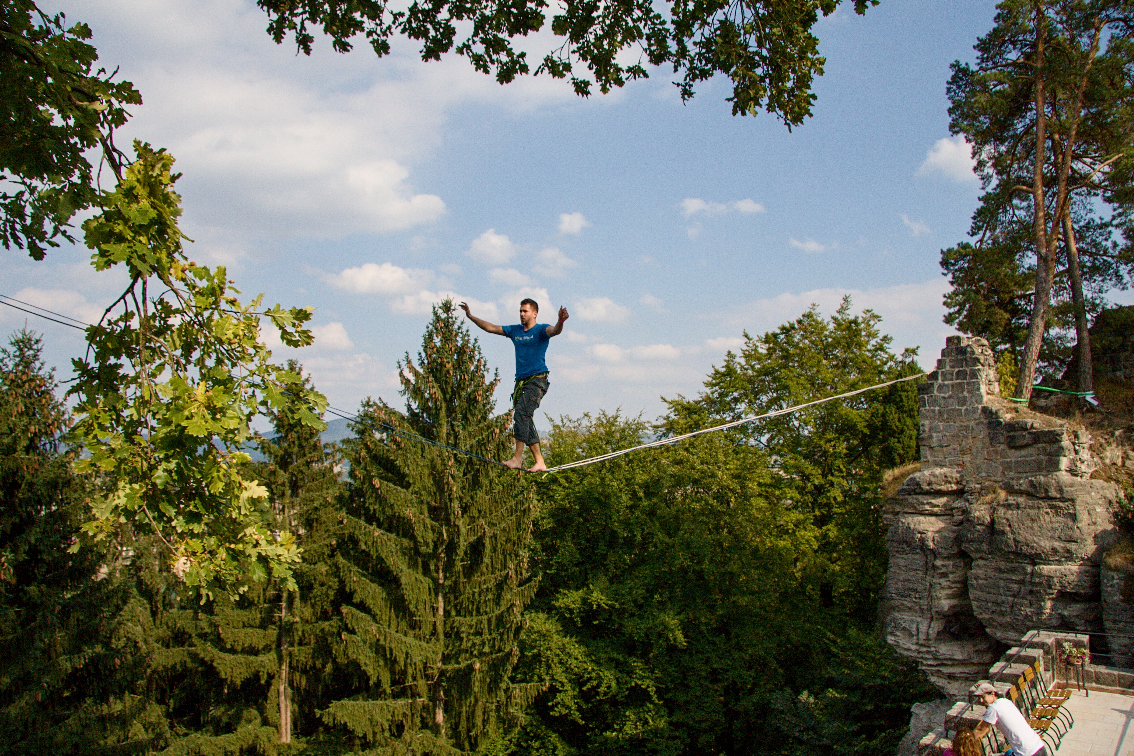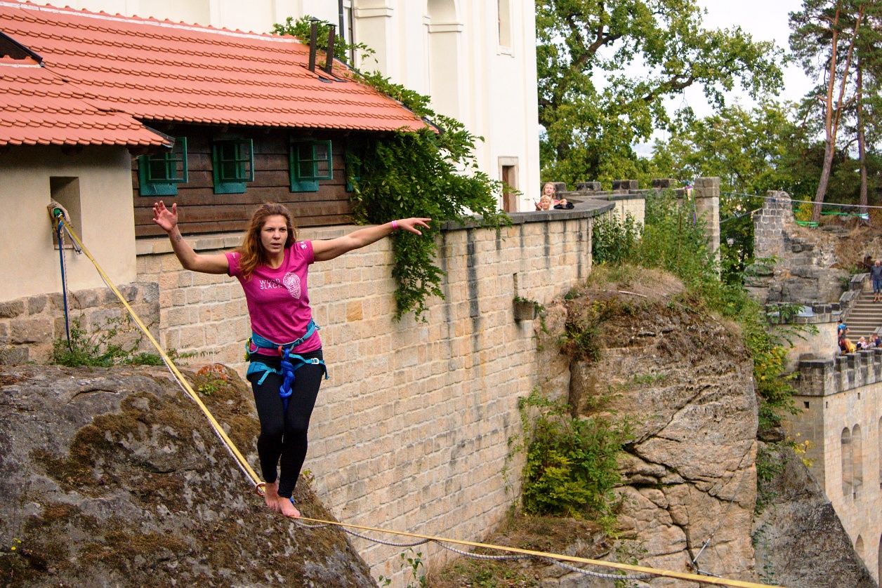 „Provazochodci k hradům vždy patřili a když jsem sem přišel, tak jsem tu hned viděl několik lajn. Valdštejn má navíc úžasný náboj a skvělé výhledy,“ popisuje zrod slackline festivalu jeho pořadatel Petr Polák.