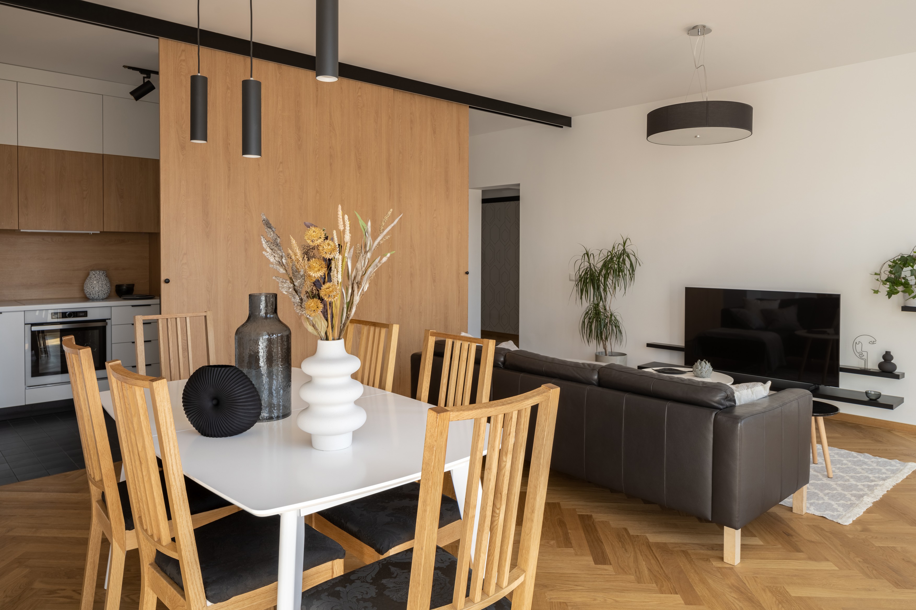 Jídelní stůl je ale samotný základ. Právě od něj se řeší celkové rozvržení celého prostoru. Každý obytný prostor by měl být dimenzován tak, abychom se tam všichni pohodlně vešli. K jídelnímu stolu by se měli pohodlně posadit všichni členové domácnosti. Tedy minimálně tolik míst k sezení, kolik lidí se v domě nachází.