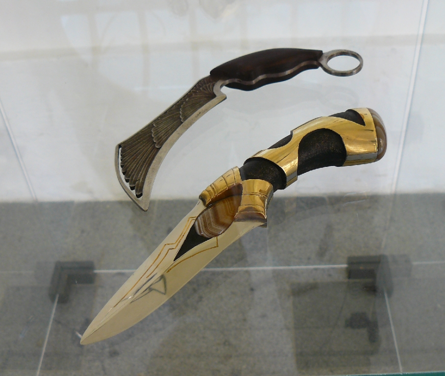 „Je to pohled na oblast jednu část lidského konání,“ říká Brožek a doplňuje: „Celkem je tu kolem dvaceti devíti velkých, většinou kovových, plastik, které tvoří ten základ. Pak je tu celá řada drobných ukázek maturitních prací ostatních oborů, jako jsou rytci kovů, zlatníci, brusiči kamenů.“