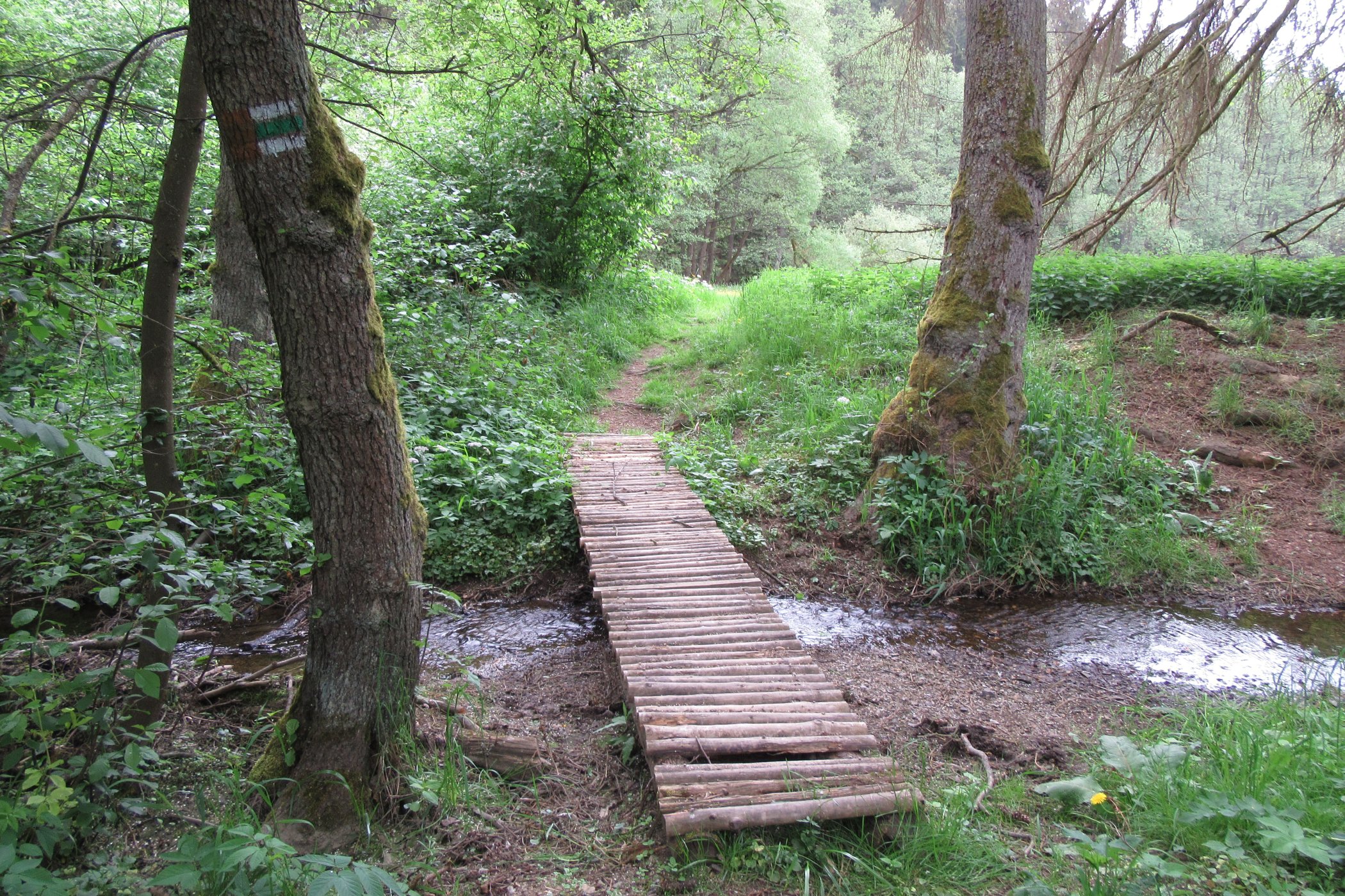 V rámci naučné stezky se ale přeci jen seznámíte se zdejší stopou člověka. V údolí stávaly v minulosti mlýny a dokonce i papírna. Dnes už dávno zaniklé objekty připomínají jen infomační panely nebo pár rozvalin.